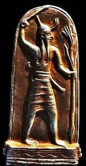 Estela representando à Baal com um raio encontrando nas ruínas de Ugarite.